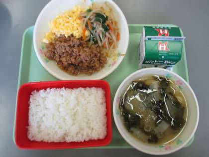 今日の給食 公開日 2019/11/01 更新日 2019/11/01 学校行事 今日の給食の献立は ごはん 二色丼(肉そぼろ 炒り卵) ほうれん草ともやしのおひたし わかめの味噌汁 です。 カロリーは,772㎉です。