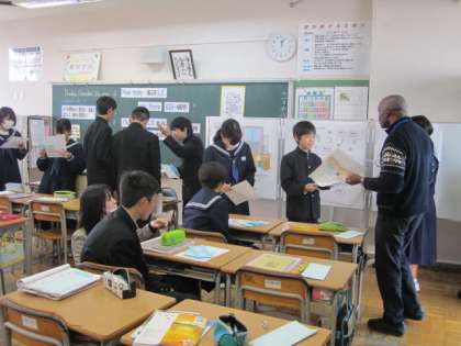 計画訪問(2年生の授業の様子) 公開日 2019/11/18 更新日 2019/11/18 2年生 英語の授業では,「4つの情報をよく聞き取り,友達と協力して,場所を確認せよ!」という学習課題で,積極的に活動していました。