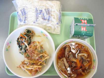 今日の給食 公開日 2019/11/20 更新日 2019/11/20 学校行事 今日の給食の献立は 肉うどん(ソフトメン 肉うどん汁) じゃことさつまいものかき揚げ 磯あえ です。 カロリーは,840㎉です。