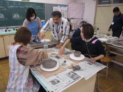 第4回家庭教育学級 公開日 2019/12/10 更新日 2019/12/10 学校行事 本日は,講師に101スタジオの先生をお招きして,陶芸体験を実施しています。参加している皆さんは,思いを込めて素晴らしい作品を作っています。