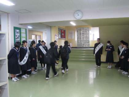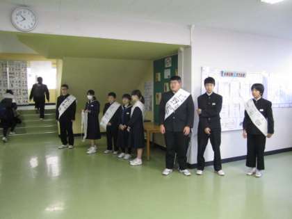 本日,5,6時間目に第1期生徒会役員選挙の立会演説会が実施されます。本日の朝が最後の選挙運動となりました。全校生徒に向けて元気なあいさつをしていました。立会演説会の演説がとても楽しみです。