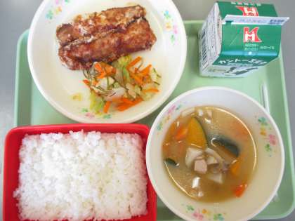 ごはん サンマの蒲焼き ゆず香和え ほうとう です。