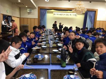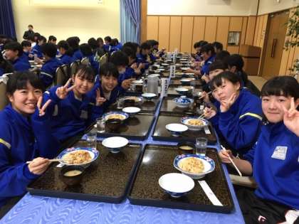 バンケットホール「清風」で昼食です。午後のスキーに向けて、みんなたくさん食べています。