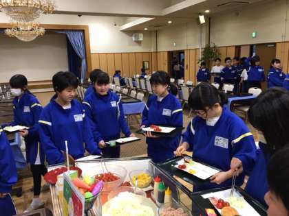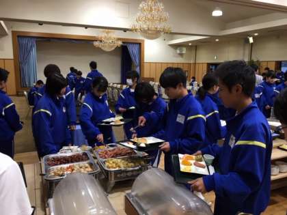 朝食はバイキングです。それぞれが、食べたいものを取っています。