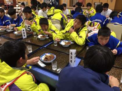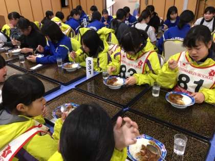 午後の講習に向けて、美味しいカレーライスをしっかりと食べています。