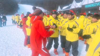 お世話になったインストラクターにお礼を言って、スキー場を後にしました。