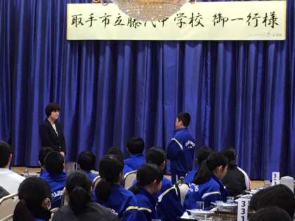 スキー学習最終日 公開日 2020/01/17 更新日 2020/01/17 学校行事 退館式 3日間お世話になったホテルの方に実行委員長からお礼の言葉を述べました。 とても快適に過ごさせていただきました。 ありがとうございました。