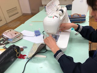 二年家庭 小物制作2 公開日 2020/01/23 更新日 2020/01/23 学校行事 中学校でも小学校の時の経験も生かしてミシンやアイロンを、針を使っていました。 自分の好きな生地で作っているので、表裏で生地を変えたり、ボタンをつけたりとみんな工夫をしていました。
