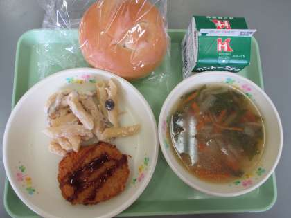 今日の給食 公開日 2020/01/24 更新日 2020/01/24 学校行事 今日の給食の献立は 米パン メンチカツ ペンネたらこクリームソース ジュリエンヌスープ です。 カロリーは,902㎉です。