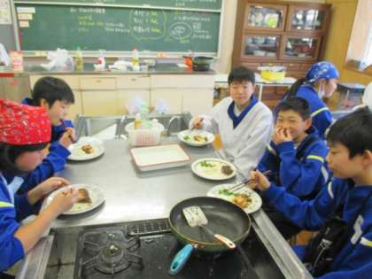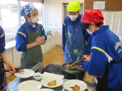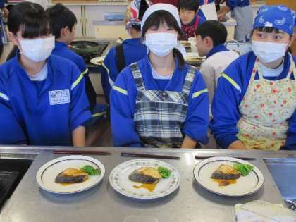 家庭科では調理実習を行いました。 ぶりの照り焼きがおいしそうにできあがりました。