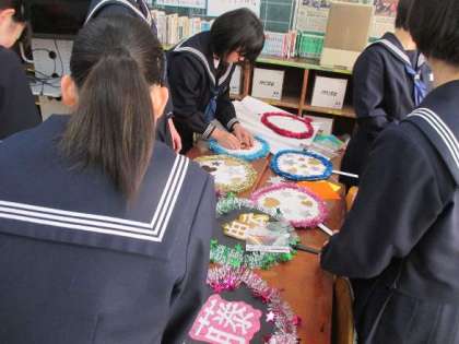 今朝も今週末の県大会に向けて、練習が行われています。 応援グッズの作成も同時進行中です。