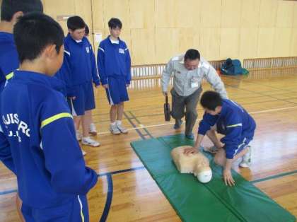 椚消防署の方々を講師としてお招きし、救命救急講習を行っています。