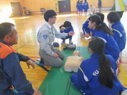 心臓マッサージやAEDの使い方などを学んでいます。