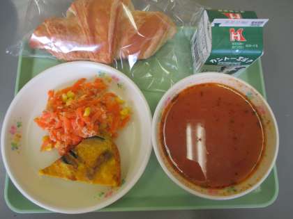 今日の給食 公開日 2020/02/07 更新日 2020/02/07 学校行事 今日の給食の献立は 世界の料理紹介 フランス です。 クロワッサン キッシュ キャロット・ラペ ブイヤベース風スープ です。 カロリーは,801㎉です。