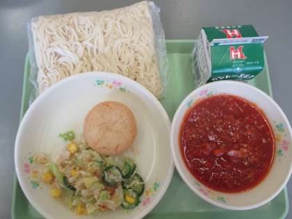 今日の給食 公開日 2020/02/19 更新日 2020/02/19 学校行事 今日の給食献立は ミートソーススパゲティ(ソフトスパゲティ ミートソース) きんとんパイ チキンサラダ です。 カロリーは,819㎉です。