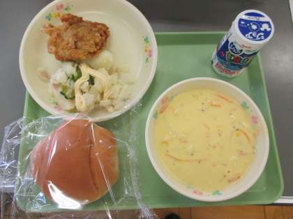 今日の給食 公開日 2020/02/21 更新日 2020/02/21 学校行事 今日の給食の献立は リクエスト献立 桜が丘小学校 です。 バターロール ジョア 鶏肉の塩からあげ ポテトサラダ コーンクリームスープ です。 カロリーは,873㎉です。