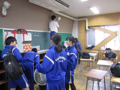 明日からの休校のため,本日大掃除を実施しています。3年生は,思い出の多い教室や下駄箱などの清掃をしっかりと行っています。