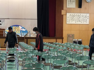 学校は休校2日目を迎えました。昨日から卒業式の会場準備がはじまっています。