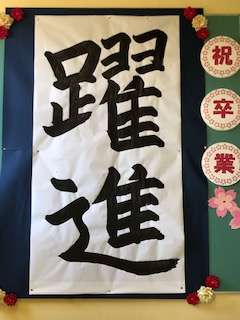 【卒業式】卒業後も躍進してください。 公開日 2020/03/12 更新日 2020/03/12 学校行事 三年生国語担当が気持ちを込めて大きく大きく書きました。卒業後も様々な場面で大きく大きく躍進してください!
