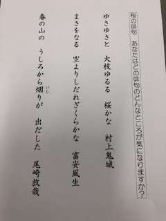 ぜひ季語を取り入れた春の俳句づくりをしてみてください。たったの一七音ですが、お家の中でも季節に触れることができます。ぜひ、みなさんも、若々しい感性で、俳句づくりにチャレンジしてみてください。作った俳句は、登校してら、ぜひ国語の担当の先生に見せてもらえればと思います。