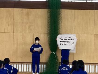 実力テストに全力で取り組んだ後は、学級委員が中心となって学年集会を行いました。