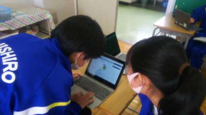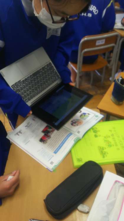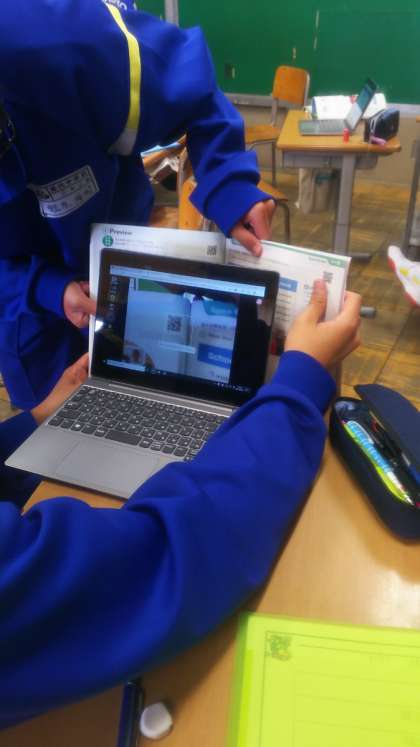 教科書のQRコードを読み取り授業にいかす、Teamsの動作確認。どんどん活用しています。