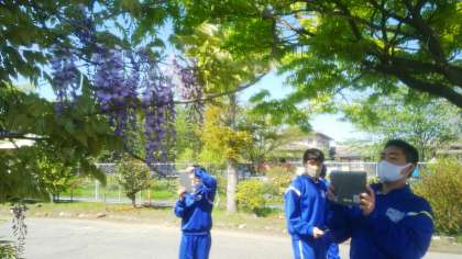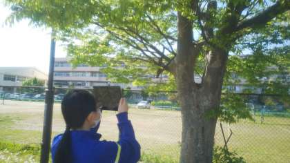 タブレット活用3年生 公開日 2021/04/19 更新日 2021/04/19 2年生 国語の俳句の学習に向けて、材料となる風景画をタブレットで撮影しています。天気も良く、心地よく活動しているようです。
