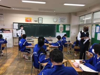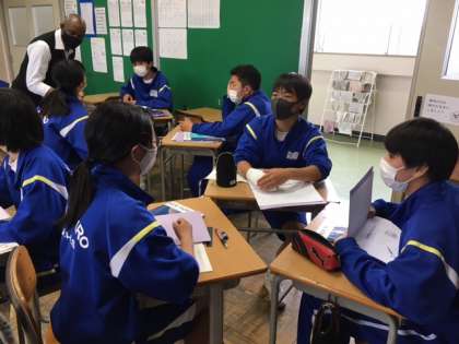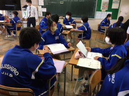 3組は英語の授業です。伊東先生と野馬口先生とともに楽しく授業をしています。