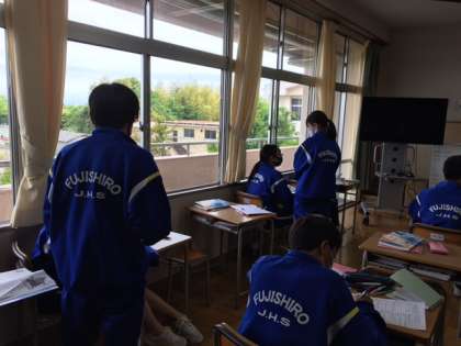 本日の課題は「場面の展開や表現の仕方に着目して作品を批評しよう」です。友達にアドバイスをしながら学んでいます。