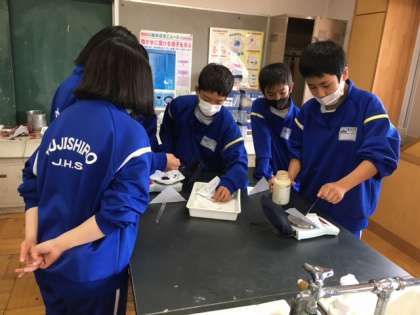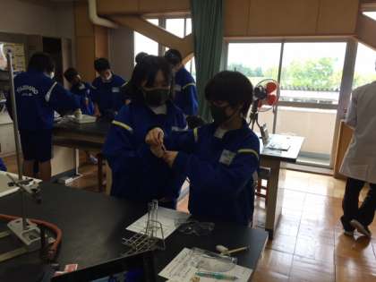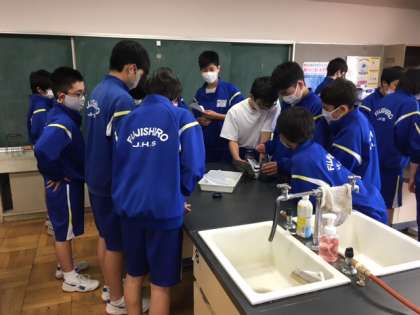 4組は理科の授業を行っています。中倉先生と学んでいます。ただいま協力して実験をしています。