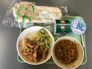 今日の給食 公開日 2021/05/21 更新日 2021/05/21 学校行事 今日の給食の献立は 世界の料理紹介 インド です。 ナン 牛乳 キーマカレー じゃがいものサブジ グリーンサラダ ヨーグルト です。 カロリーは,810㎉です。