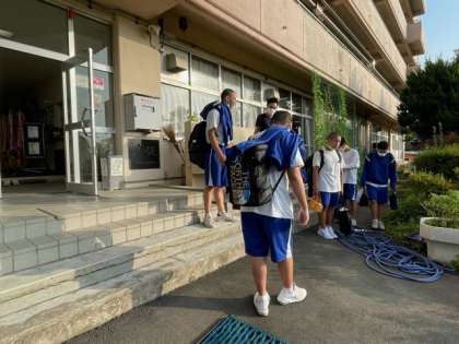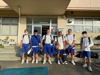 柔道部が県大会に出発しました。場所は、下館総合体育館です。頑張れ藤中。
