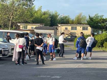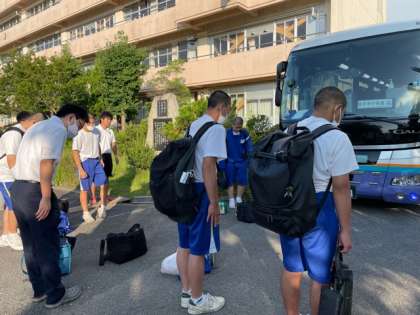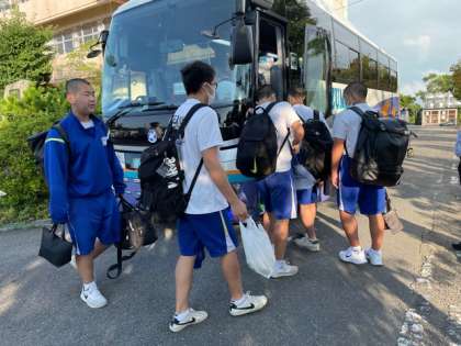 柔道部が出発しました。今日は団体戦です。頑張れ藤中。