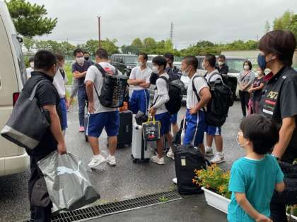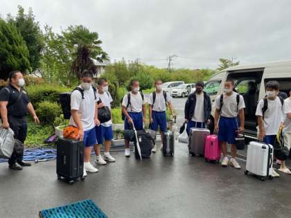 柔道部が関東大会へ出発しました。場所は山梨県 小瀬スポーツ公園武道館です。頑張れ藤中。