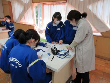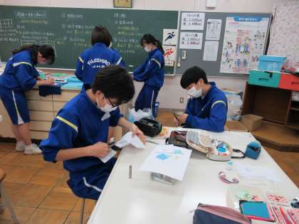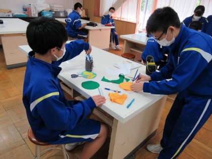 3年生は家庭科でエンブレムの作成しています。
