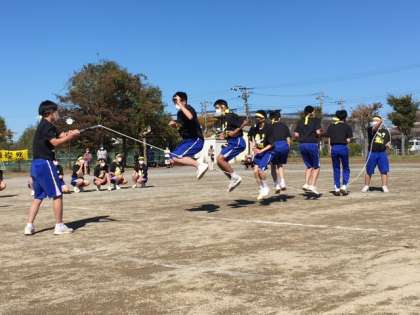 みんなでJUMP!!3年生 大縄跳び、かけ声をかけて、合わせています。