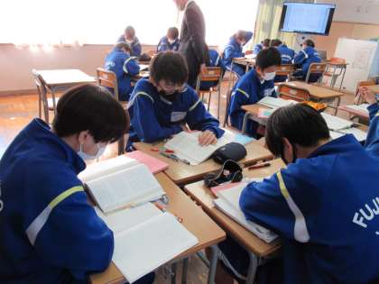国語の授業では、グループ活動で課題解決に取り組んでいます。