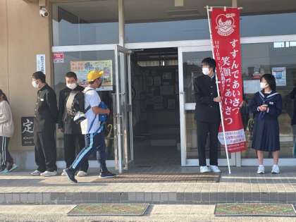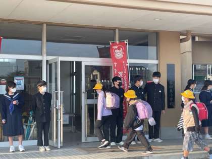 今日は、あいさつ運動が行われました。登校する小学生に元気なあいさつをすることができました。