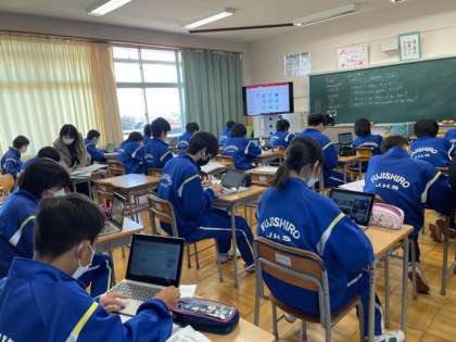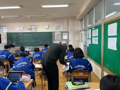 3年生の社会では、国民の生活と政府の役割について考えました。2年生の英語では、比較表現を使ってクイズ作りをしました。
