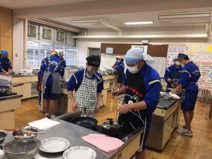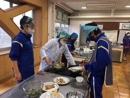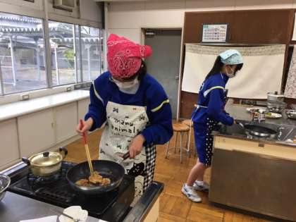 2年1組は、調理実習でしょうが焼きと粉ふきいもを作っています。美味しそうな匂いが校内に流れています。