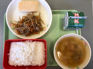 今日の給食 公開日 2021/12/13 更新日 2021/12/13 学校行事 今日の給食の献立は 日本の食べ物の旅 青森県 です。 ごはん イカのにんにく味噌焼き きんぴらごぼう けの汁 です。 カロリーは、762㎉です。