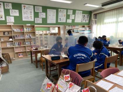 心からみんなすすめたい一冊の本の紹介カードを作成しています。