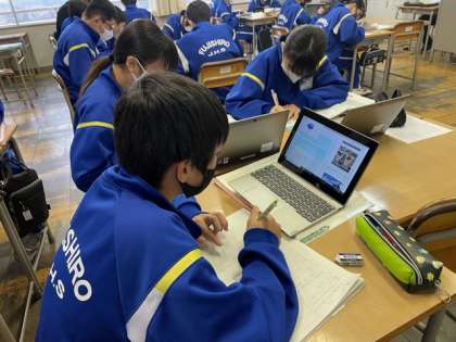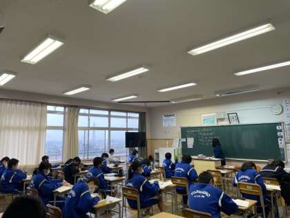 雨で寒い日ですが、藤中生は学習に熱く取り組んでいます。