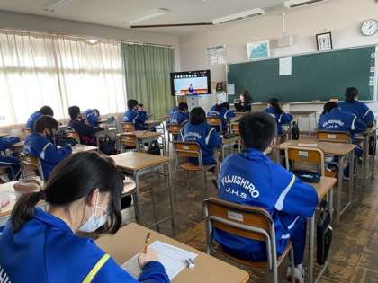 学級でT eamsを使って演説を見ています。