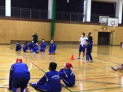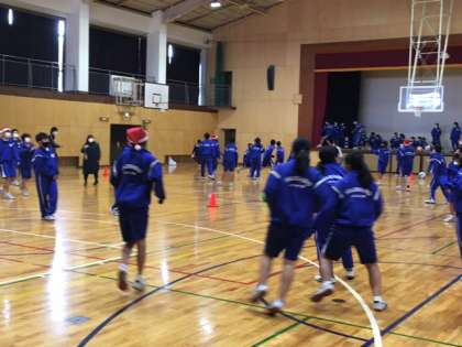 1年生は生徒企画のレクを体育館で行っています。みんな楽しんでいます。
