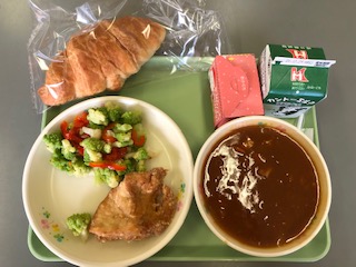 今日の給食 公開日 2021/12/24 更新日 2021/12/24 学校行事 今日の給食の献立はクリスマス献立です。 クロワッサン 牛乳 フライドチキン クリスマスサラダ ポークシチュー クリスマスケーキ です。 カロリーは、864㎉です。