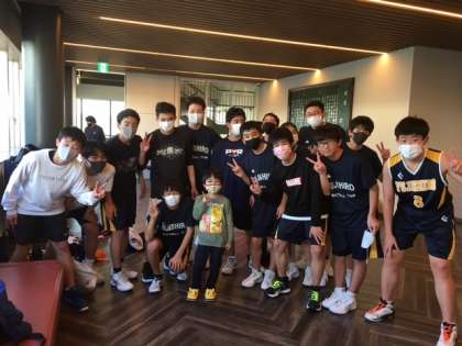 男子バスケ部は75対19で勝ち上がりました。明日も頑張ります!
