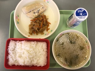 今日の給食 公開日 2022/01/11 更新日 2022/01/11 学校行事 今日の給食の献立は 鏡開き献立 です。 ごはん 乳飲料(ジョア) 西京味噌焼き れんこんきんぴら 雑煮 です。 カロリーは、818㎉です。