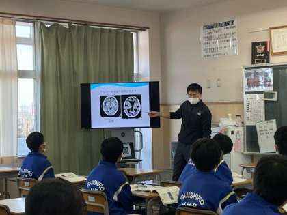 2年生の保健の授業です。飲酒の害と健康について学んでいます。