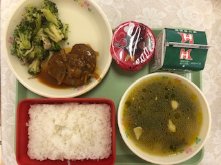 今日の給食 公開日 2022/02/14 更新日 2022/02/14 学校行事 今日の給食の献立は ごはん 牛乳 煮込みハンバーグ ブロッコリーのガーリックソテー 野菜スープ いちごのムース です。 カロリーは、873㎉です。